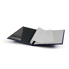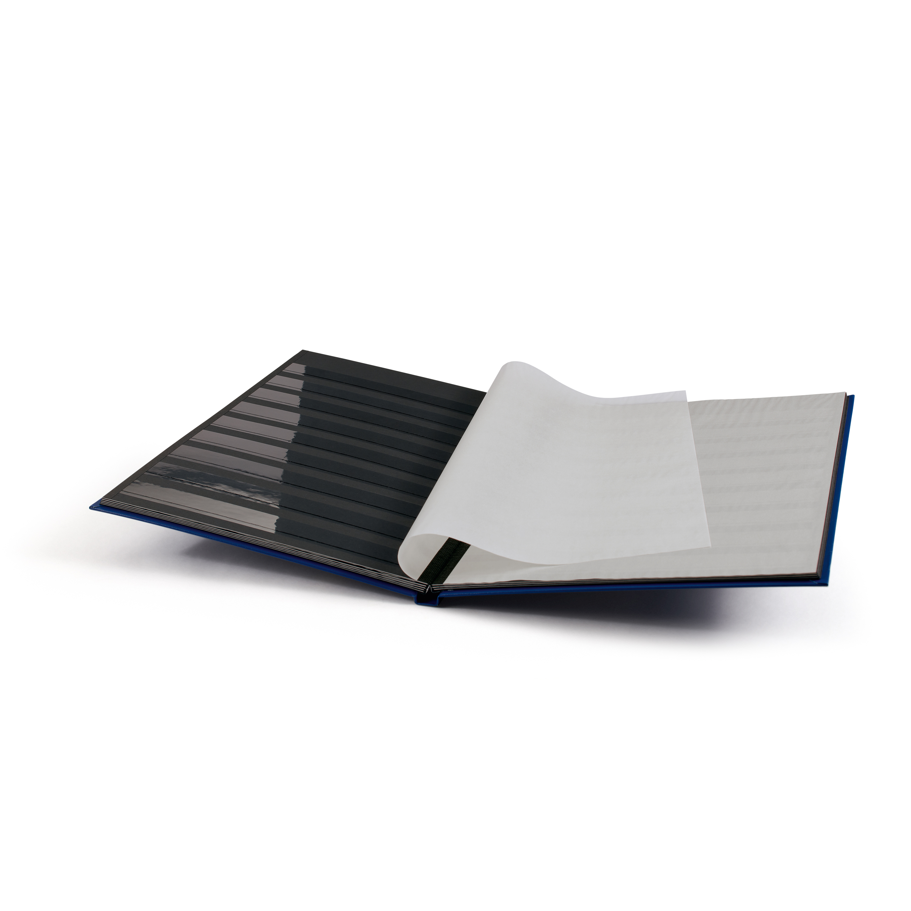 BASIC Einsteckbuch A4*, 16 schwarze Seiten, unwattierter Einband, 9 Klarsichstreifen pro Seite, Zwischenblätter doppelt, starre Bindung.