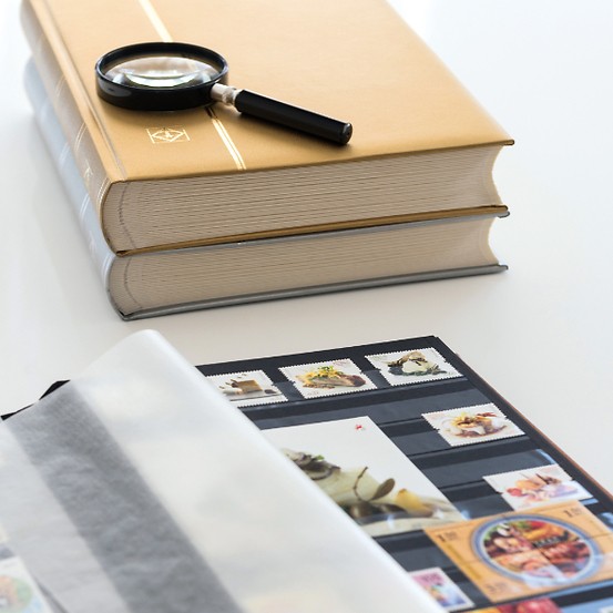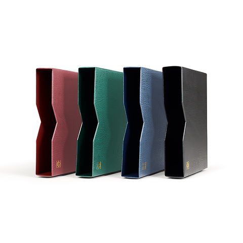 Als Einsteckbücher werden Briefmarkenalben aus Kartonseiten mit horizontalen Pergamin- oder Folienstreifen bezeichnet, in die Briefmarken eingesteckt werden. Auch wenn ein Teil der Sammlung anderweitig, z. B. in Vordruckalben, aufbewahrt wird: Einsteckbücher als Aufbewahrungsort für Doubletten, als mobile Lösung z. B. für Tauschtage oder auch als Unterbringungsort für die teuersten Stücke im Schließfach sind sie im Handwerkszeug des Philatelisten nicht wegzudenken. Bitte wählen Sie das Format Ihres Einsteckbuches, die Farbe des Kartons, die Seitenanzahl sowie Material und Farbe des Einbands.