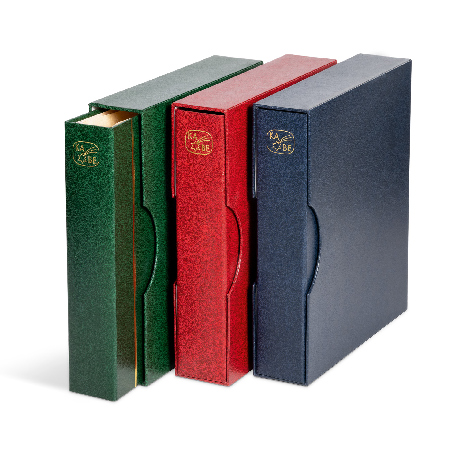 Sie erbauen sich an wertvollen kleinen Kunstwerken und beachten dabei sehr wohl den äußeren Rahmen, die Güte der Präsentation. An KABE-Briefmarkenalben schätzen Sie die ästhetische Gestaltung, das edle Material, die feine buchbinderische Verarbeitung und die sorgfältige Redaktion. Darüber hinaus bietet KABE dem Markensammler ein philatelistisches Gesamtprogramm, welches keine Wünsche offen lässt. Für die stilgerechte Unterbringung stehen Binder mit unterschiedlichen Mechaniken und Designs zur Auswahl. Auch hier gilt der hohe Qualitätsanspruch. So sind die Binder aus sehr hochwertigen, strapazierfähigen Einbänden mit Goldprägungen oft ein langjähriger Begleiter für jeden Sammler.