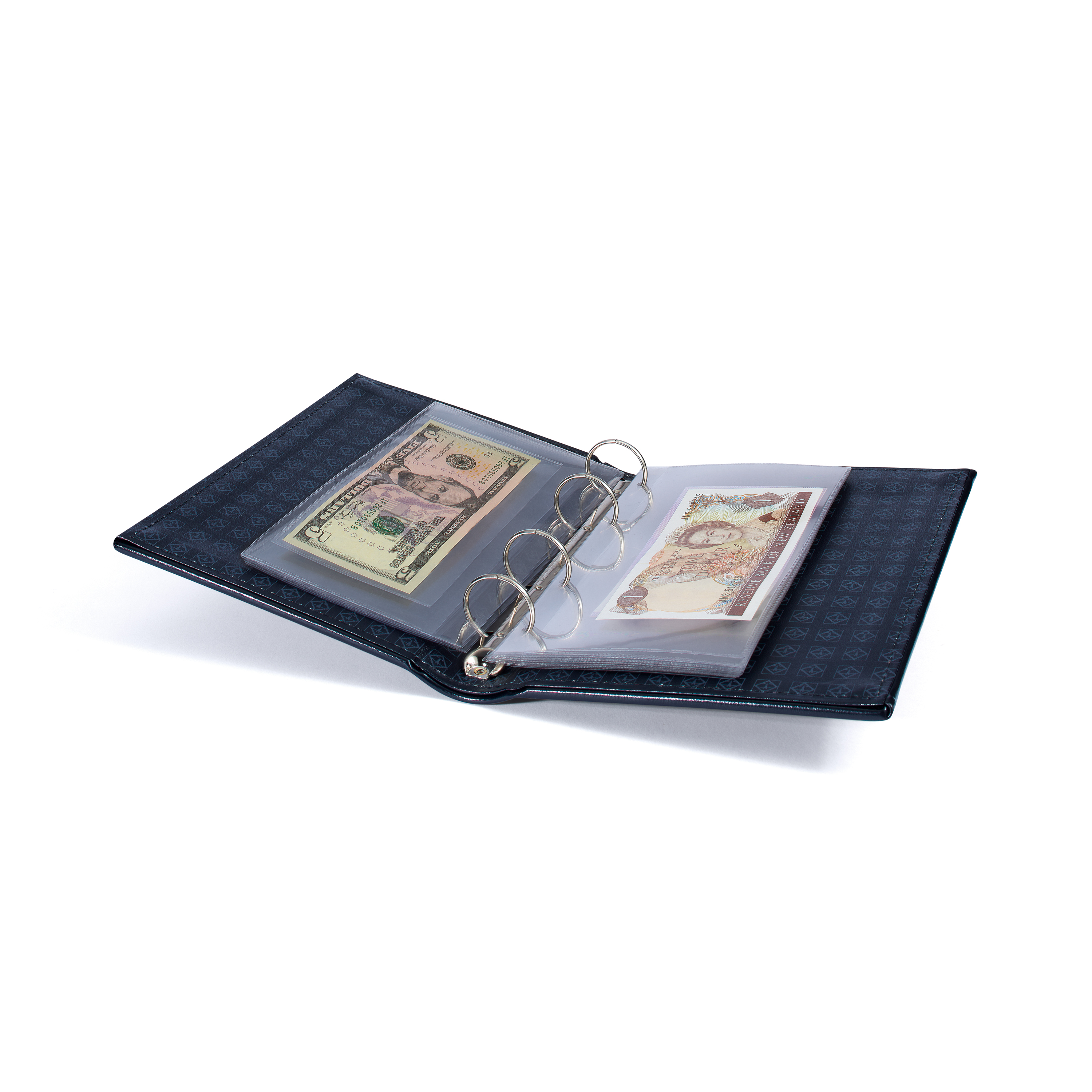 Mit stabiler 4-Ring-Mechanik und hochwertigen, transparenten Hüllen eignet es sich ideal zur geschützten Präsentation und flexiblen Erweiterung einer Banknotensammlung.