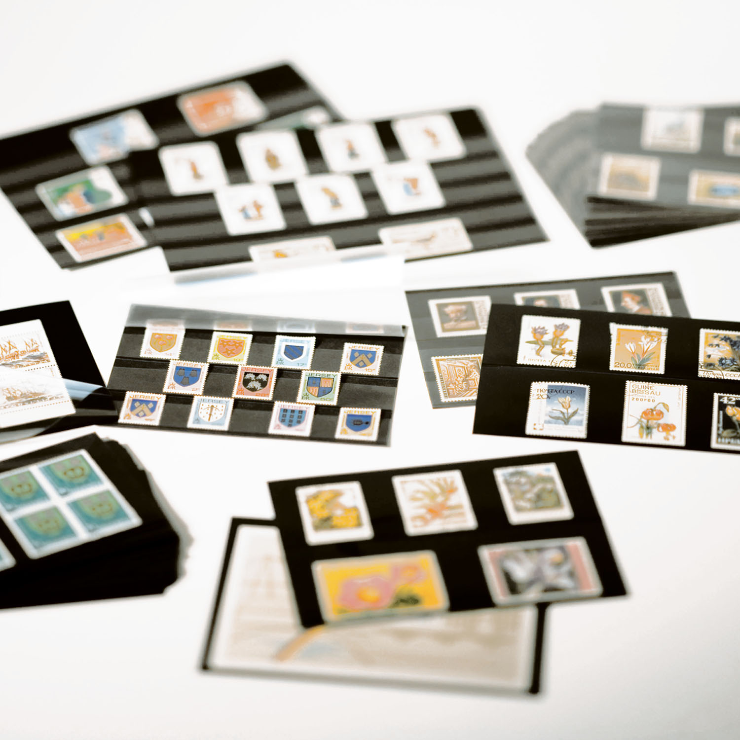 Die Karten aus Karton haben auf der Vorderseite Klarsichtstreifen in unterschiedlicher Anzahl und verschiedenen Materialien (Polystyrol oder Hart-PVC). Sie sind zusätzlich mit einem Schutzblatt versehen.