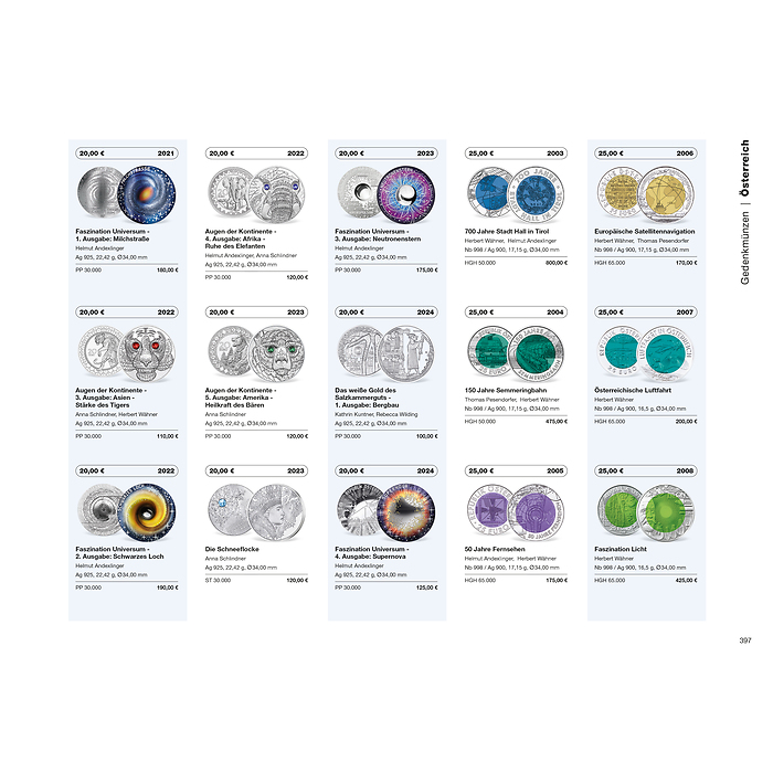 Erscheinen Sie immer auf dem neuesten Stand, denn dieser Katalog wird jährlich zum 1. Dezember aktualisiert, um sämtliche bis zum Redaktionsschluss bekannten Münzen zu berücksichtigen und die Auflagenzahlen früherer Ausgaben zu bereinigen.