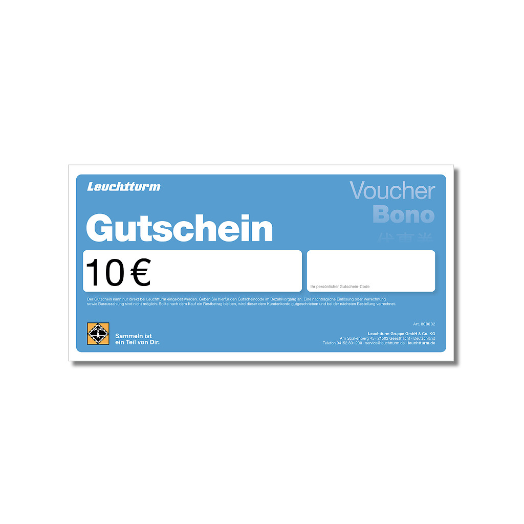 Jeder Gutschein-Besitzer erhält bei LEUCHTTURM ein Guthaben-Konto, sowie die Möglichkeit, den vollständigen Gutscheinbetrag auch durch mehrere Bestellungen einzulösen.Gutschein ist nicht auszahlbar