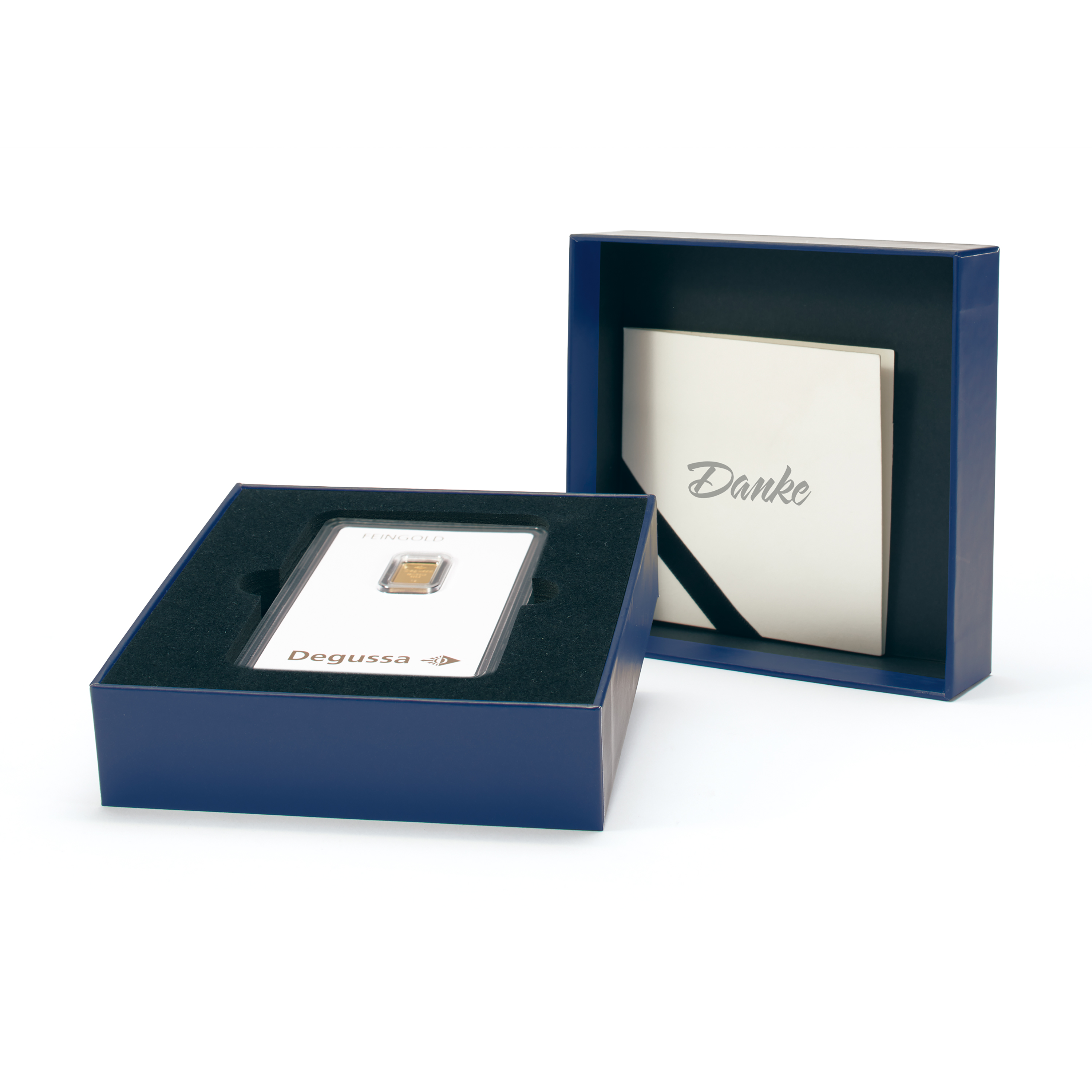 Geschenkschachtel für einen Goldbarren in Blisterverpackung „Danke“, klassisch