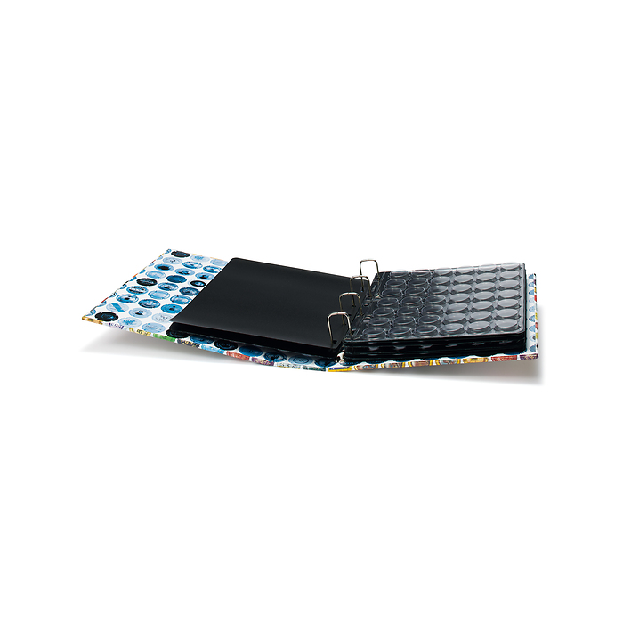 Champagner-Album GRANDE, mit 5 schwarzen Hüllen für 210 Champagner Deckel. Mit 4-Ring-Geradbügelmechanik.
