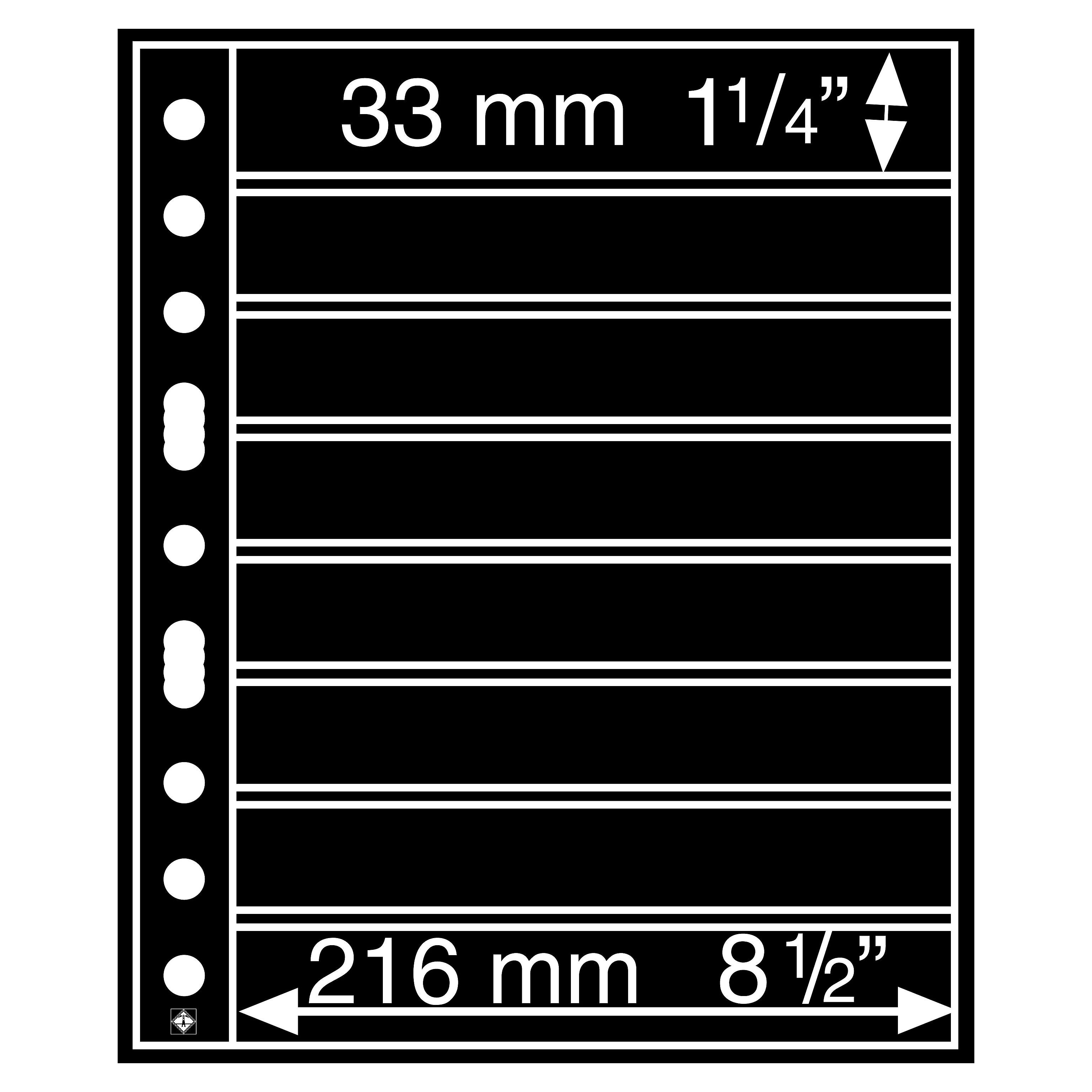 Die Folientaschen haben ein Format von B/H 216 x 33 mm. Außenformat: 240 x 312 mm.