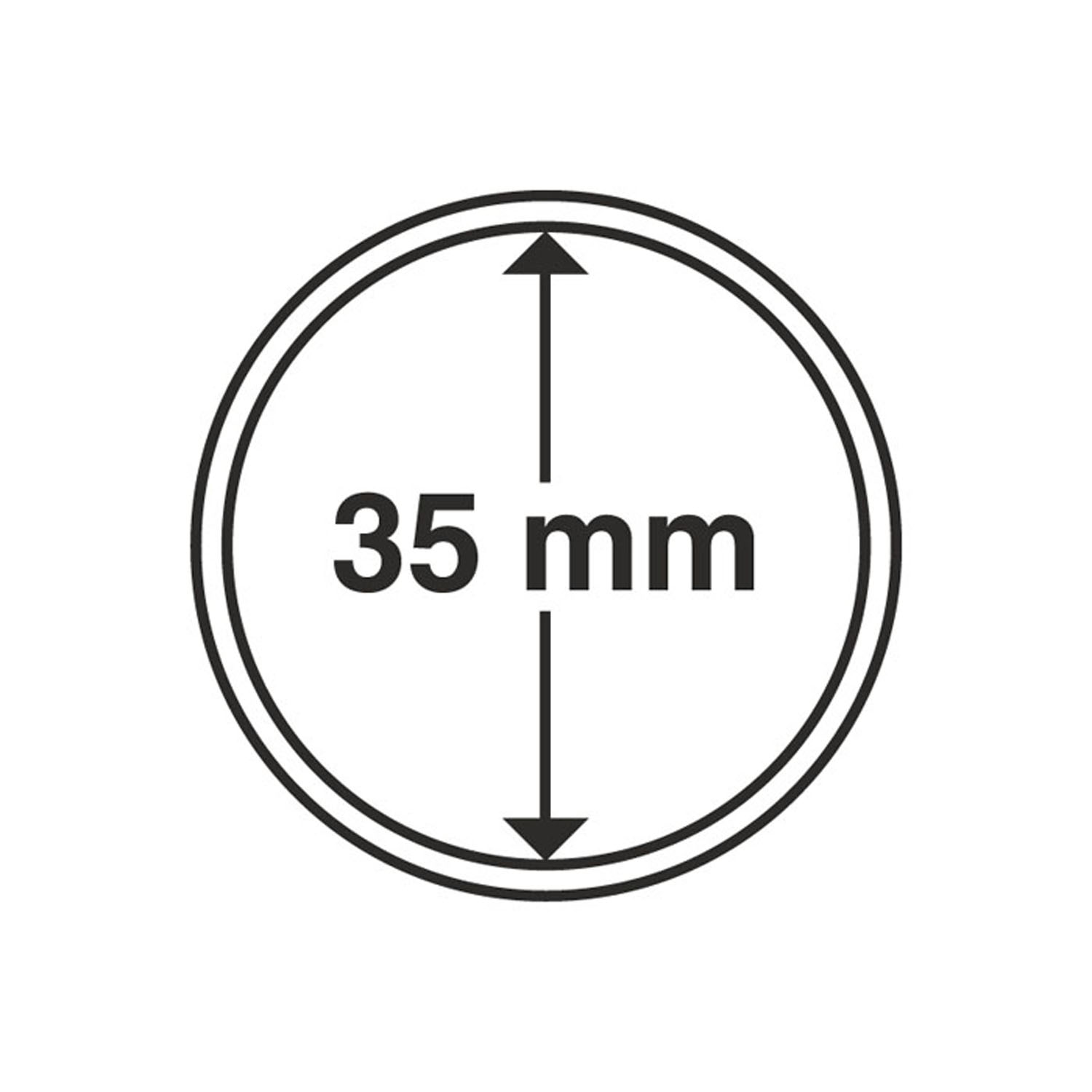 Original Münzkapseln von Leuchtturm - der optimale Schutz für Ihre Münzen. Gefertigt aus hochwertigem, kratzfestem Kunststoff. Farbe: Glasklar. Die Kapseln lassen sich aufgrund des Außenrandes leicht öffnen und verfügen dennoch über einen sicheren Verschluß. Innendurchmesser: 35 mm Außendurchmesser 41 mm.
