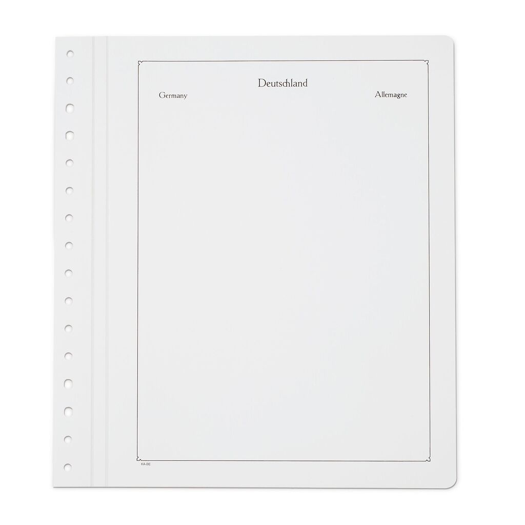 Albenblätter mit Landesbezeichnung zur weiteren Ergänzung der Vordruckalben sowie zum Aufbau individueller Sammlungen. Das Blattformat ist ein heitlich 275x310 mm und passend für alle KABE-Albenbinder.