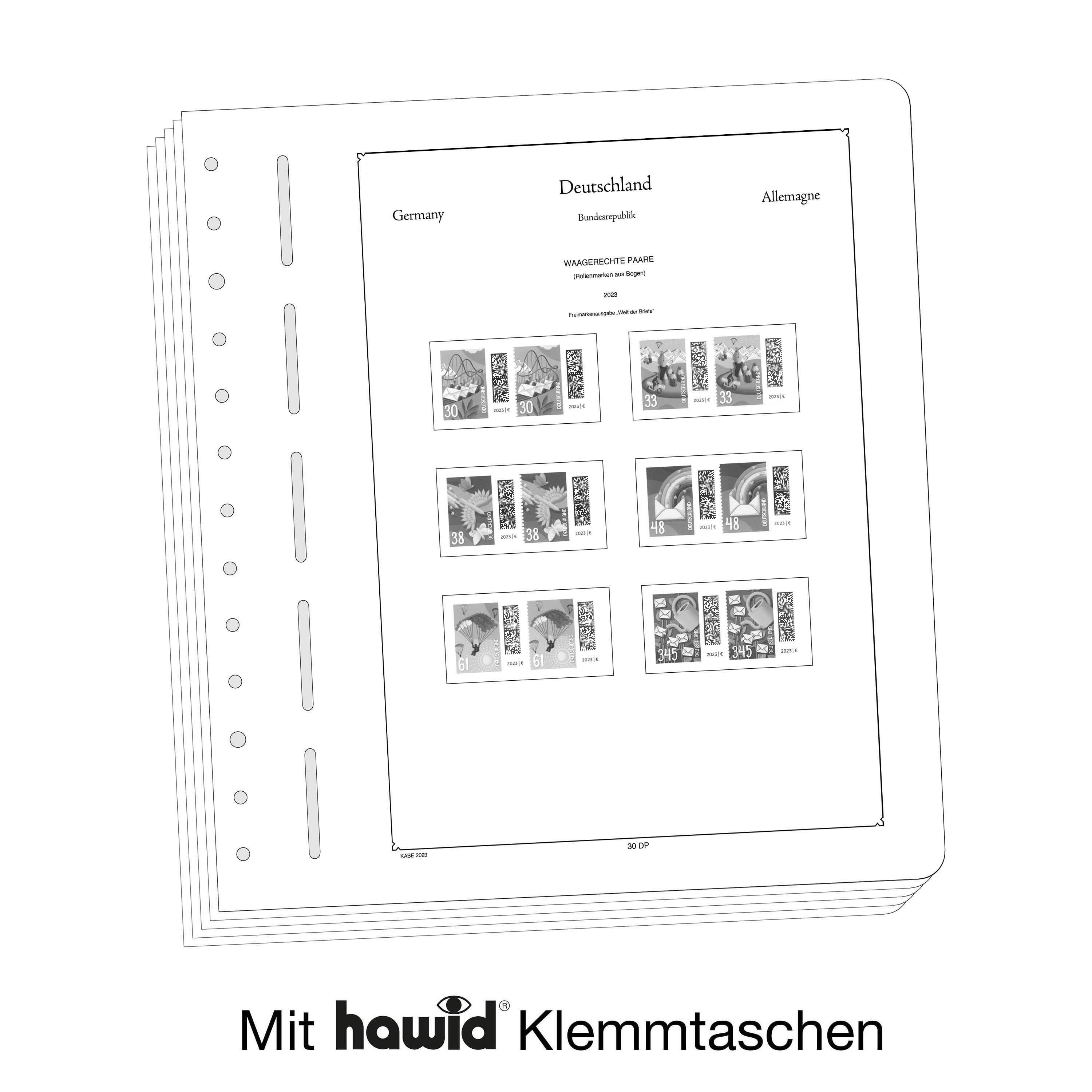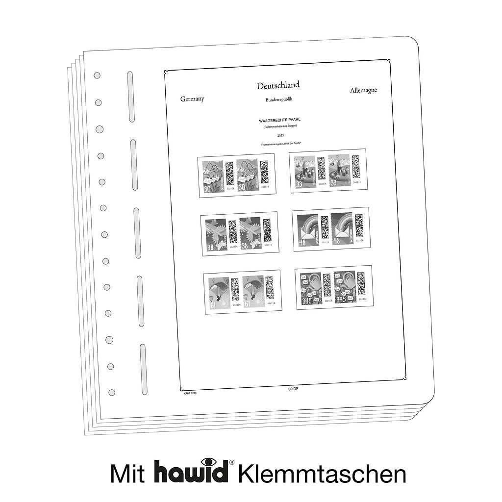 KABE Vordruckblätter (Format 275 x 310 mm) werden im detailgetreuen schwarz–weiß Offsetdruckauf alterungsbeständigem, holz- und säurefreiem Karton (175 g/m 2 ) gedruckt. Wir verzichten bewusst auf einen Farbdruck. Dies dient als Orientierungshilfe, damit Sie auf einen Blick sehen, welche Marken Ihnen noch fehlen. In der Größe des Markenvordrucks sind SF-Schutztaschen aus weichmacherfreier, glasklarer, entspiegelter Polystyrol-Folie auf den Albenkarton geklebt. Die Schutztaschen halten die Briefmarken präzise an ihrem Platz und verhindern ein Festkleben. Gleichzeitig bieten sie auch einen optimalen Schutz gegen Staub und Beschädigungen. Das doppelte Leinengelenk sorgt für eine optimale Planlage sowie eine lange Haltbarkeit für Ihre Vordruckblätter.