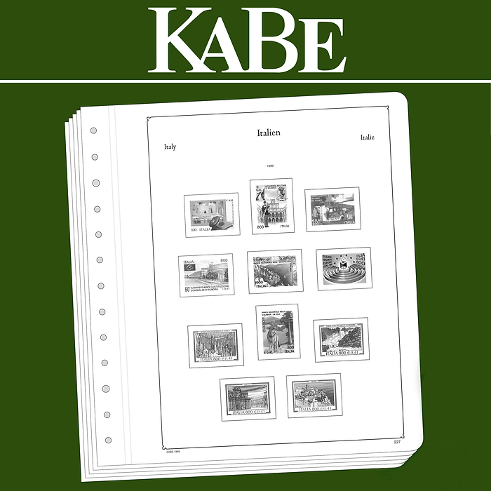 KABE Vordruckblätter (Format 275 x 310 mm) werden im detailgetreuen schwarz–weiß Offsetdruckauf alterungsbeständigem, holz- und säurefreiem Karton (175 g/m 2 ) gedruckt. Wir verzichten bewusst auf einen Farbdruck. Dies dient als Orientierungshilfe, damit Sie auf einen Blick sehen, welche Marken Ihnen noch fehlen. In der Größe des Markenvordrucks sind