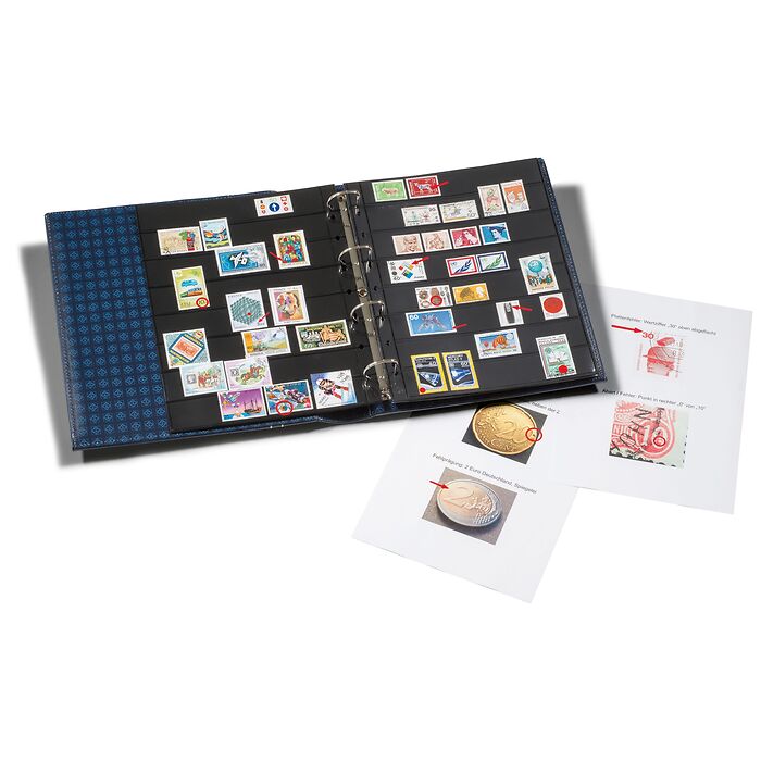 Etiketten zum Kennzeichnen von z.B. Besonderheiten, Fehlern oder Schäden auf Briefmarken, FDCs, Münzen, Postkarten etc. Etiketten sind wieder ablösbar, u. a. sowohl von Papier oder Karton als auch von Kunststoffhüllen, Kunststoffstreifen und Pergamin. Jeder Etikettenbogen mit Punkten, Kreisen und Pfeilen in verschiedenen Größen. 10er Pack.