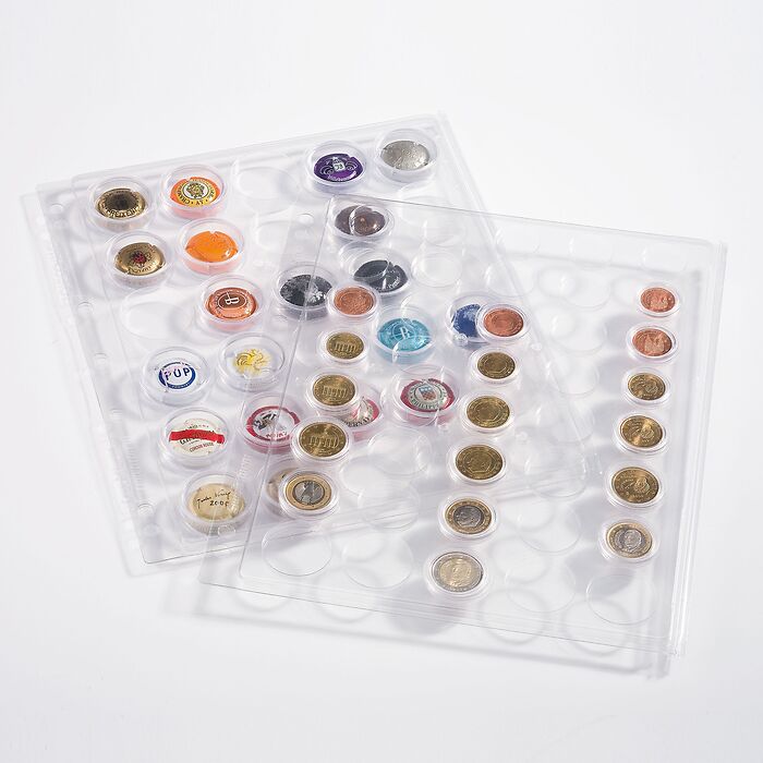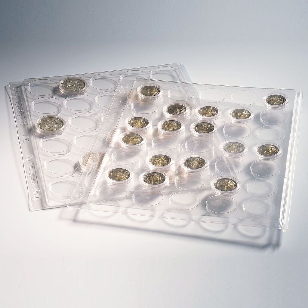 ENCAP-Hüllen bieten ein effizientes System zur Aufbewahrung von gekapselten Münzen. Hergestellt aus hochwertigem, formstabilem klarsichtigem Kunststoff (Polyester), sind sie für alle gängigen runden Münzkapseln, Quadrum-Münzkapseln sowie US-Münzkapseln erhältlich. Das Außenformat beträgt 282 x 235 mm. Die Hüllen passen problemlos in alle GRANDE-Binder oder gängigen Büroordner mit 4 Ringen. Pro Packung erhalten Sie 2 ENCAP-Hüllen.