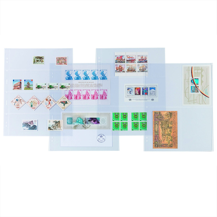 Hochtransparente aufgeschweißte Streifen bieten durch die vollständige Abdeckung der eingelegten Sammelstücke einen optimalen Schutz. 100% weichmacher- und säurefrei. 8-cm-Lochung. Die glasklaren C Hüllen sind von einer Seite zu befüllen. Die Belege können von der Vorder- und Rückseite gut betrachtet werden.