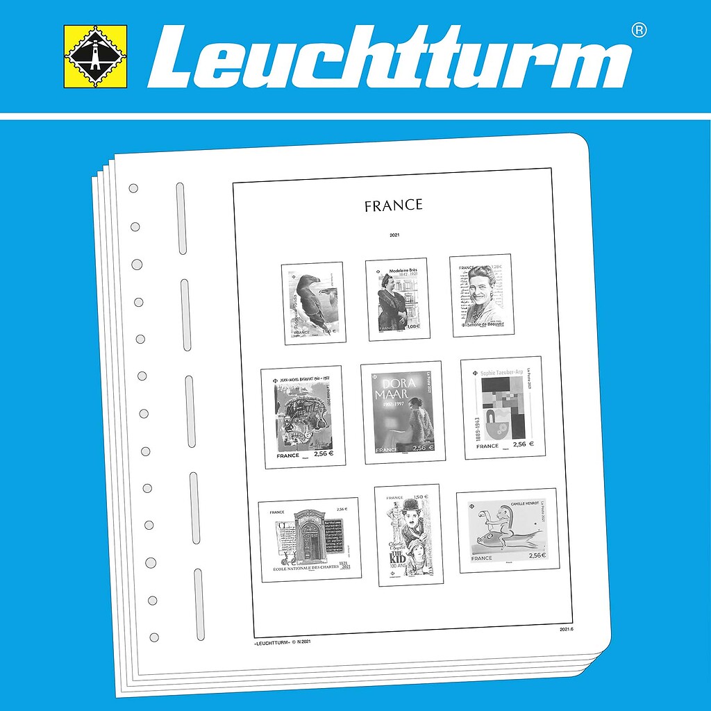 LEUCHTTURM Albenblätter (Format 270 x 297 mm/ 13-Loch-System) werden im detailgetreuen schwarz–weiß Offsetdruckauf alterungsbeständigem, holz- und säurefreiem Karton (170 g/m 2 ) gedruckt. Wir verzichten bewusst auf einen Farbdruck. Dies dient als Orientierungshilfe, damit Sie auf einen Blick sehen, welche Marken Ihnen noch fehlen. In der Größe des Markenvordrucks sind SF-Schutztaschen aus weichmacherfreier, glasklarer, entspiegelter Polystyrol-Folie auf den Albenkarton geklebt. Die Schutztaschen halten die Briefmarken präzise an ihrem Platz und verhindern ein Festkleben. Gleichzeitig bieten sie auch einen optimalen Schutz gegen Staub und Beschädigungen.