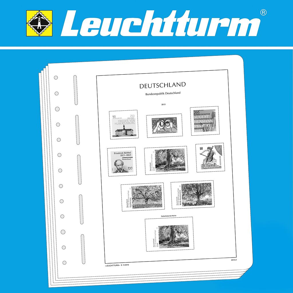 LEUCHTTURM Albenblätter (Format 270 x 297 mm/ 13-Loch-System) werden im detailgetreuen schwarz–weiß Offsetdruckauf alterungsbeständigem, holz- und säurefreiem Karton (170 g/m 2 ) gedruckt. Wir verzichten bewusst auf einen Farbdruck. Dies dient als Orientierungshilfe, damit Sie auf einen Blick sehen, welche Marken Ihnen noch fehlen. In der Größe des Markenvordrucks sind SF-Schutztaschen aus weichmacherfreier, glasklarer, entspiegelter Polystyrol-Folie auf den Albenkarton geklebt. Die Schutztaschen halten die Briefmarken präzise an ihrem Platz und verhindern ein Festkleben. Gleichzeitig bieten sie auch einen optimalen Schutz gegen Staub und Beschädigungen.
