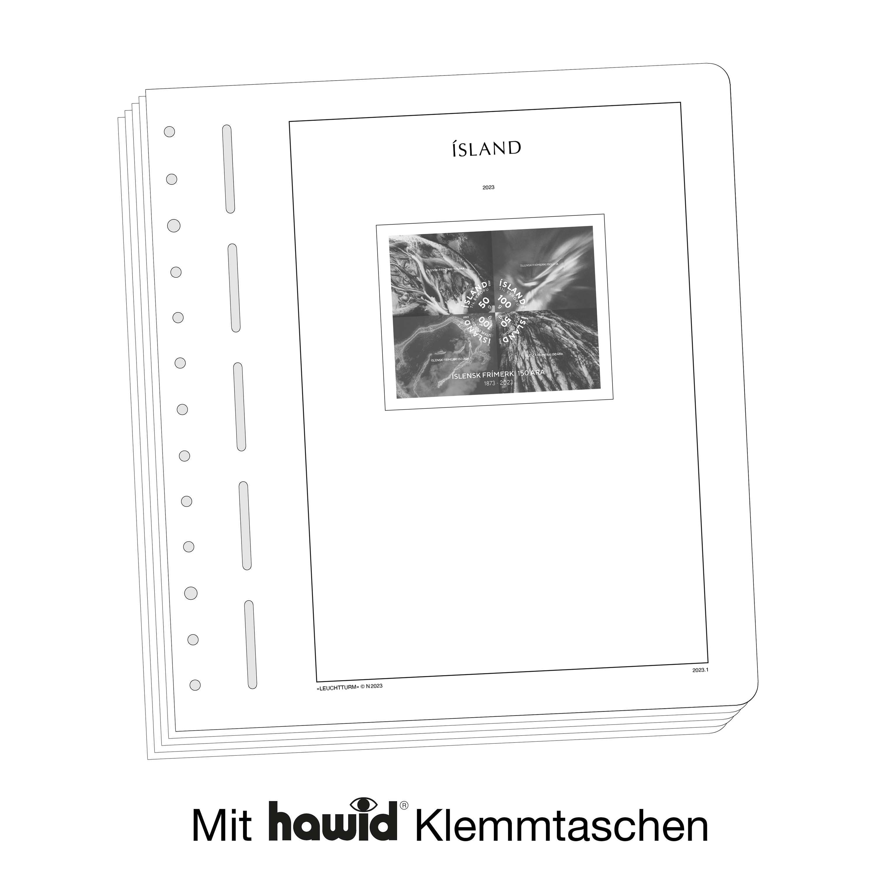 LEUCHTTURM Albenblätter (Format 270 x 297 mm/ 13-Loch-System) werden im detailgetreuen schwarz–weiß Offsetdruckauf alterungsbeständigem, holz- und säurefreiem Karton (170 g/m 2 ) gedruckt. Wir verzichten bewusst auf einen Farbdruck. Dies dient als Orientierungshilfe, damit Sie auf einen Blick sehen, welche Marken Ihnen noch fehlen. In der Größe des Markenvordrucks sind SF-Schutztaschen aus weichmacherfreier, glasklarer, entspiegelter Polystyrol-Folie auf den Albenkarton geklebt. Die Schutztaschen halten die Briefmarken präzise an ihrem Platz und verhindern ein Festkleben. Gleichzeitig bieten sie auch einen optimalen Schutz gegen Staub und Beschädigungen.
