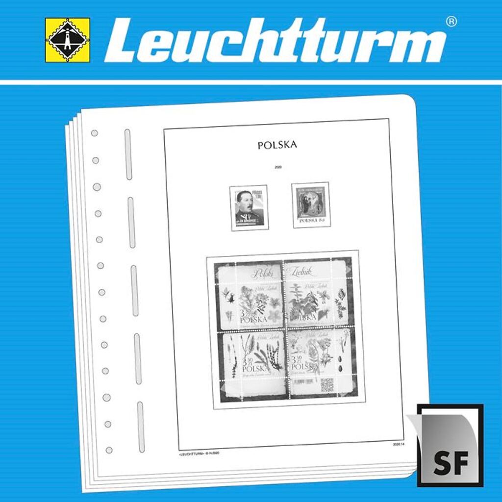LEUCHTTURM Albenblätter (Format 270 x 297 mm/ 13-Loch-System) werden im detailgetreuen schwarz–weiß Offsetdruckauf alterungsbeständigem, holz- und säurefreiem Karton (170 g/m 2 ) gedruckt. Wir verzichten bewusst auf einen Farbdruck. Dies dient als Orientierungshilfe, damit Sie auf einen Blick sehen, welche Marken Ihnen noch fehlen. In der Größe des Markenvordrucks sind SF-Schutztaschen aus weichmacherfreier, glasklarer, entspiegelter Polystyrol-Folie auf den Albenkarton geklebt. Die Schutztaschen halten die Briefmarken präzise an ihrem Platz und verhindern ein Festkleben. Gleichzeitig bieten sie auch einen optimalen Schutz gegen Staub und Beschädigungen.