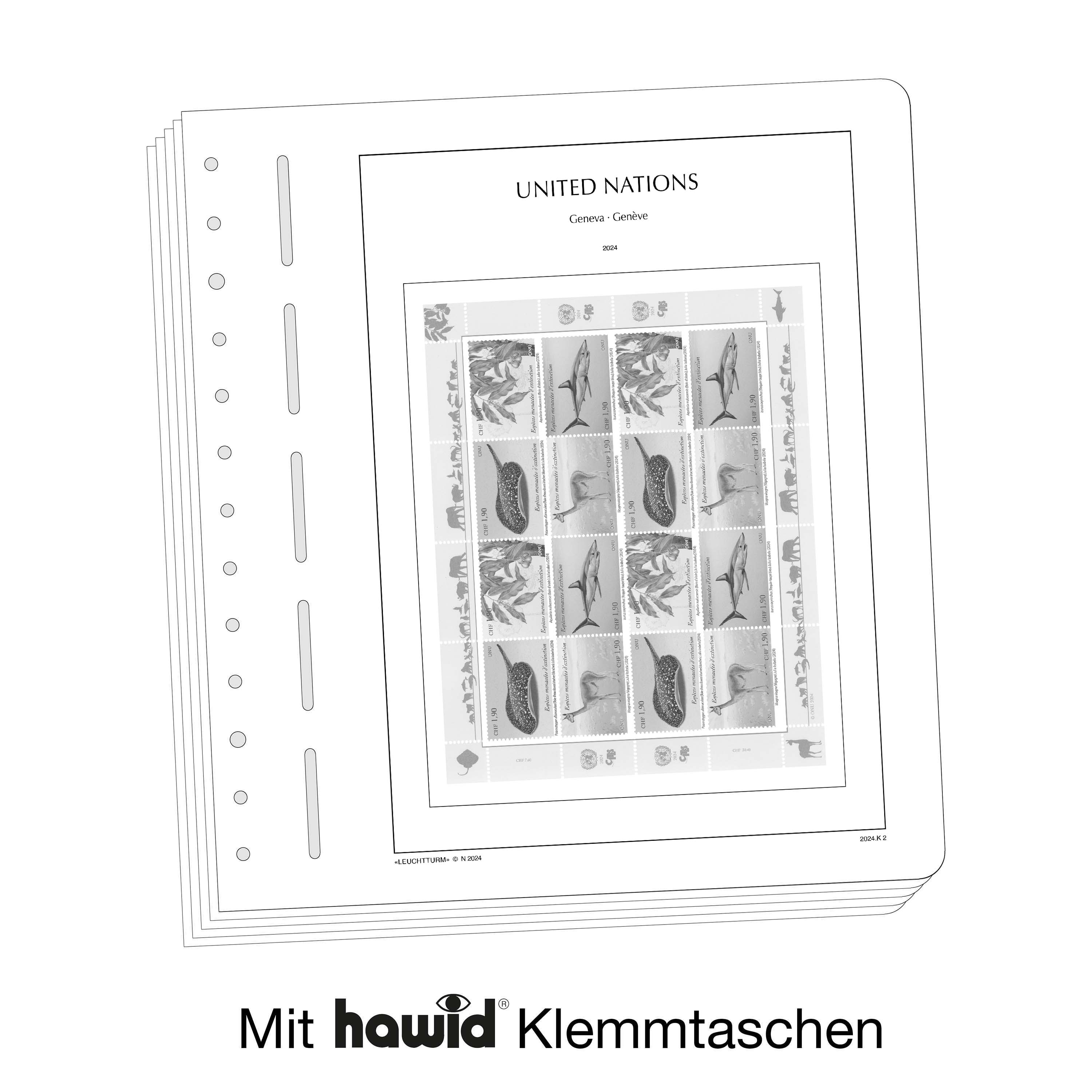 Leuchtturm Nachtrag mit Klemmtaschen UNO Genf-Kleinbogen 2024