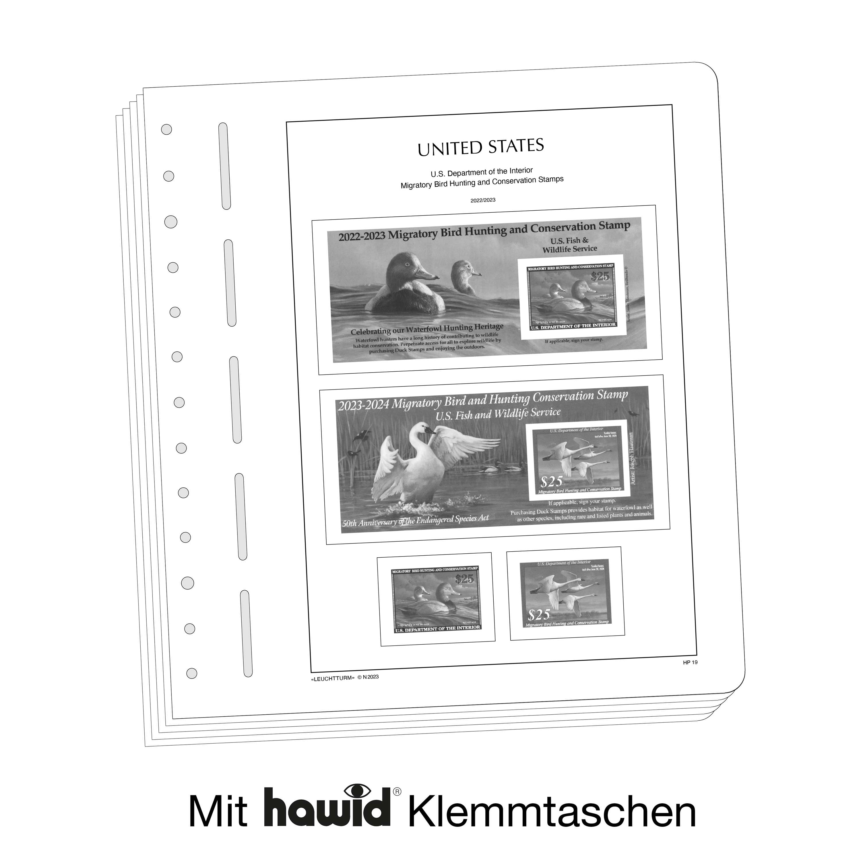 Leuchtturm Nachtrag mit Klemmtaschen USA Jagdschein-Gebührenmarken 2023