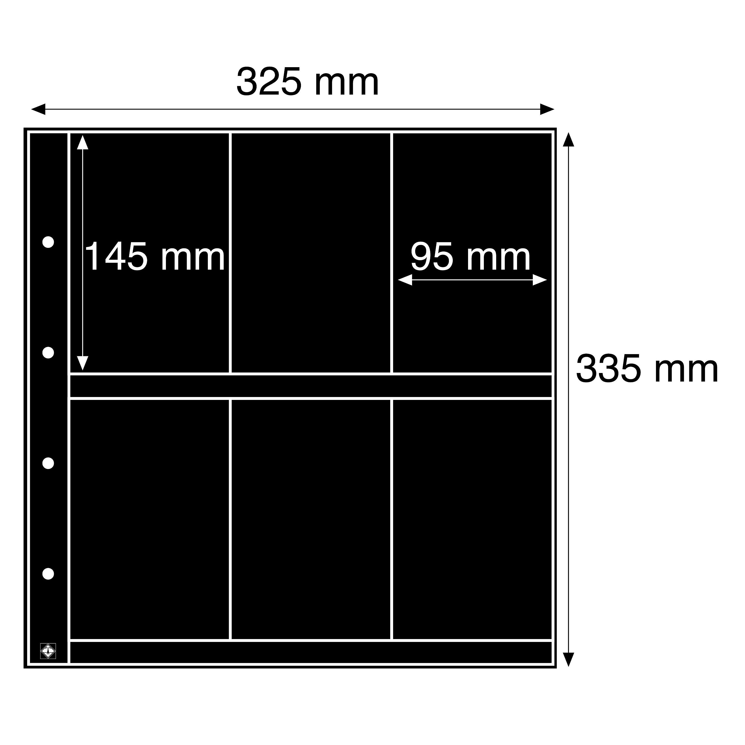 Kunststoffhüllen MAXIMUM für alte Postkarten, Hüllenformat B/H: 325 x 335 mm, Fachformat H/B: 145 x 95 mm, Hochformat, schwarz
