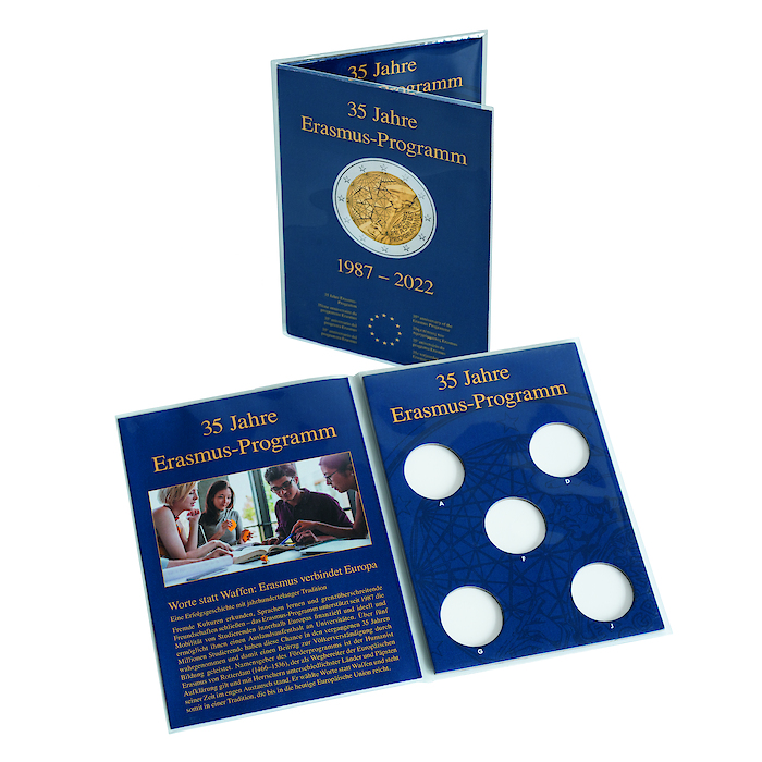 Münzkarte für 5 dt. 2-Euro-Gedenkmünzen „Erasmus" 2022