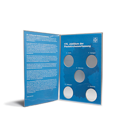 deutschen 2-Euro-Gedenkmünzen 2024 „175. Jubiläum der Paulskirchenverfassung“ (Prägebuchstaben A, D, F, G, J). Untergebracht in einer glasklaren, weichmacherfreien Kunststofffolie. Die Münzen sind beidseitig zu betrachten. Mit interessanten Hintergrundinformationen und Bildmaterial. Außenformat: 106 x 144 mm. Optimal als Geschenkverpackung geeignet.