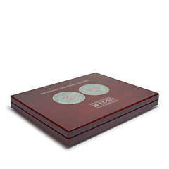 Diese hochwertige, mahagonifarbene VOLTERRA Münzkassette dient der Unterbringung von 25 deutschen 10 Euro-Sammlermünzen (Prägestätten A, D, F, G, J) der Serie „Im Dienst der Gesellschaft“ in Kapseln. Einlage mit blauer, veloursartiger Oberfläche und 25 runden Feldern (ø35 mm). Edler, silberfarbener Deckeldruck mit Münzmotiv der ersten deutschen 10-Euro-Sammlermünze „Pflege“. Deckelkissen mit blauen Satin gepolstert. Sicherer und unauffälliger Magnetverschluss. Außenformat: 305 x 245 x 30 mm. Kapseln nicht im Lieferumfang enthalten