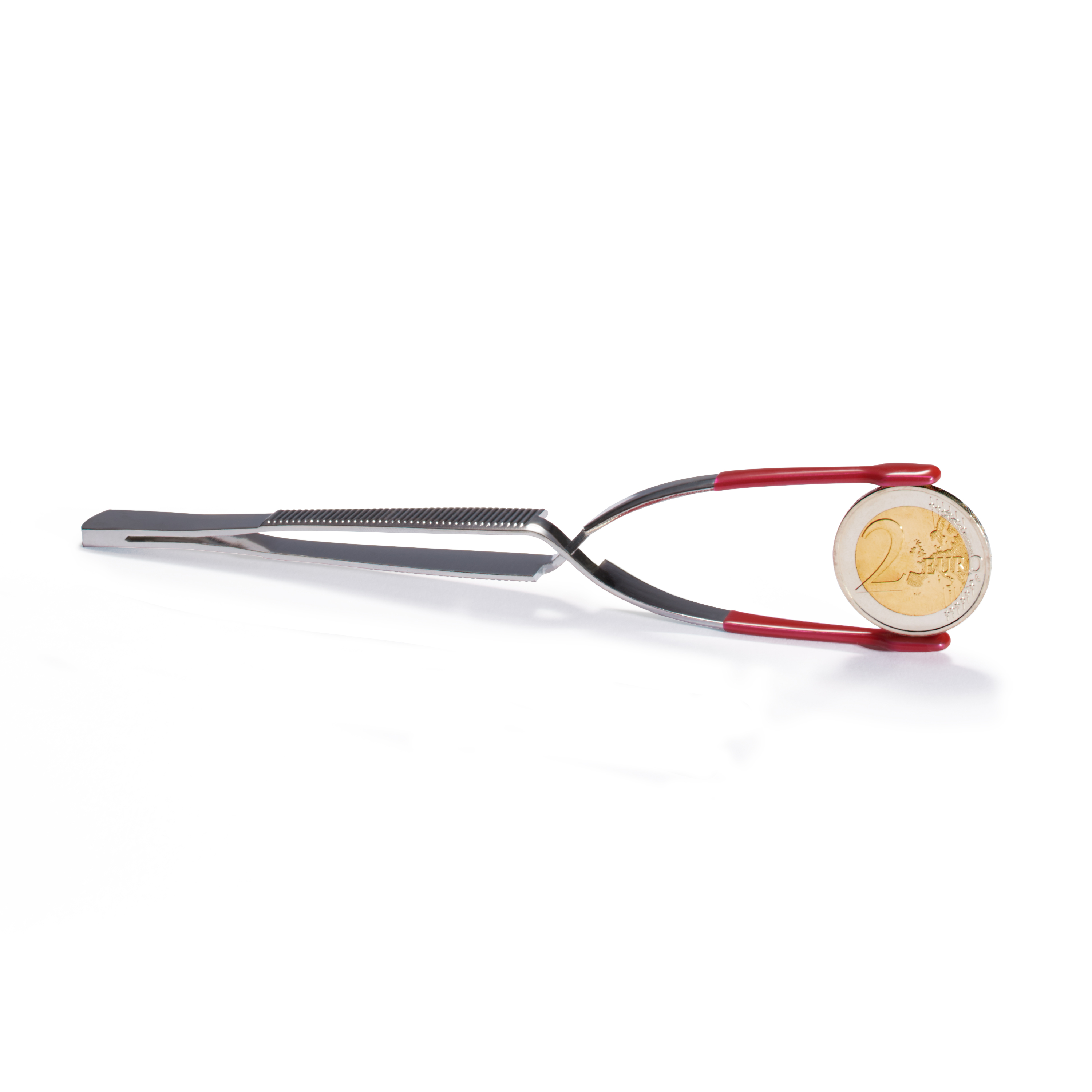 Mit der praktischen Münzpinzette haben Sie die Möglichkeit, Ihre Münzen – wie hier gezeigt – schonend anzufassen. Die Kunststoffbeschichtung sorgt für sicheren Halt und schützt vor Beschädigung.
