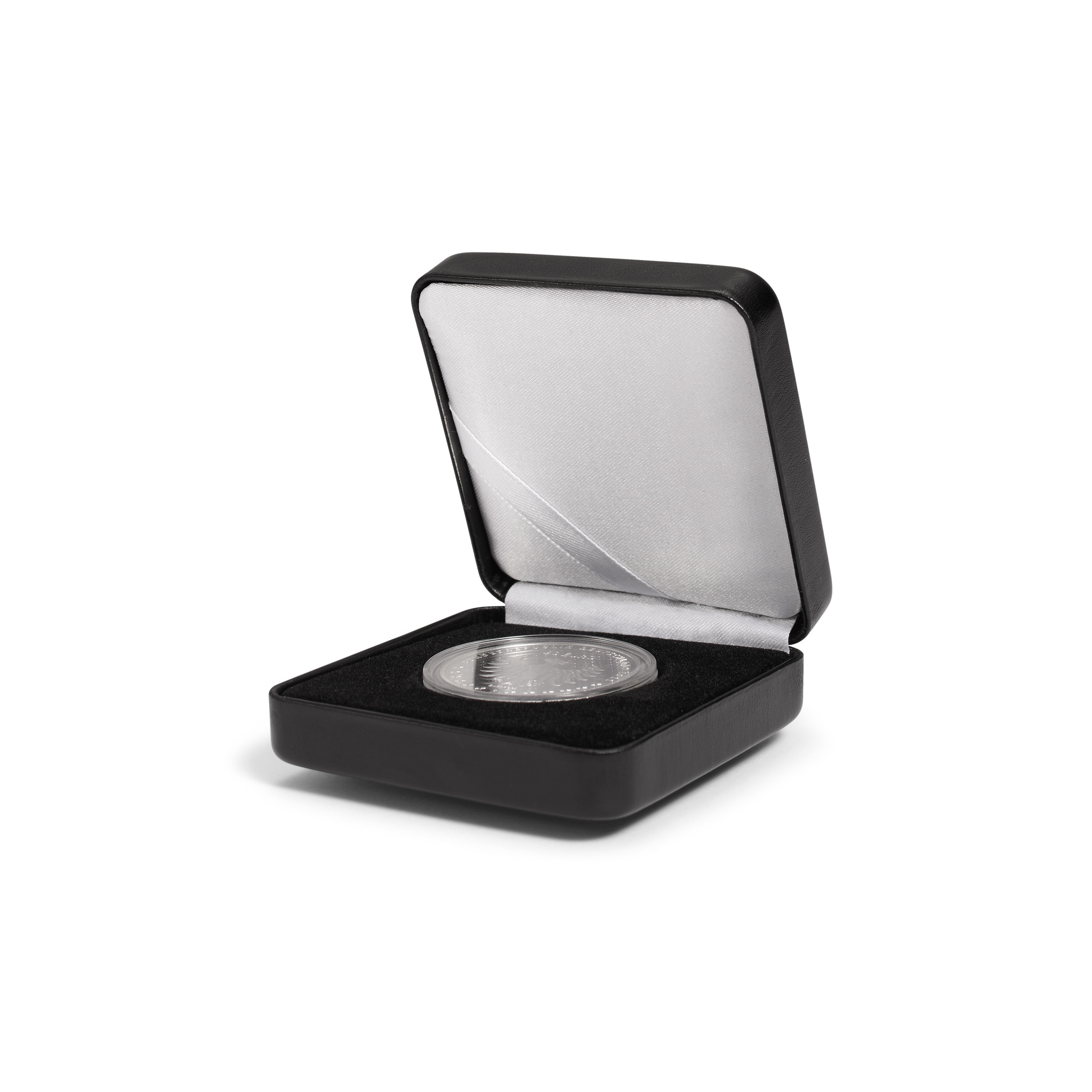 Zur anspruchsvollen Aufbewahrung von gekapselten Münzen empfehlen wir Ihnen diese edlen Münz-Etuis aus Metall. Der seidenmatte, lederähnliche Bezugsstoff sowie die Samteinlage geben diesen Etuis eine besonders edle Anmutung. Im Deckelkissen befindet sich ein Satinbändchen, das zur Aufnahme eines evtl. vorhandenen Zertifikates dient. Durch Ihren hochwertigen Metallkern ist dieses Etui neben der Aufbewahrung auch perfekt für den sicheren Versand geeignet.Etui. Maße: 65 x 65 x 26 mm