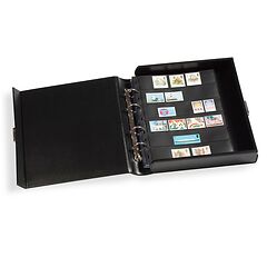 Hochwertiger Binder im CLASSIC-Design zur sicheren und repräsentativen Unterbringung von Münzen, Banknoten, Briefmarken und sonstigen Belegen. Zur individuellen Bestückung des Binders wählen Sie aus unserem umfangreichen OPTIMA-Hüllen-Sortiment. Durch die integrierte, abschließbare Schutzkassette sind Ihre Sammelobjekte zuverlässig gegen Staub und Schmutz geschützt. Buchbinderische Verarbeitung, edler Kunstledereinband und stabile 4-O-Ring-Mechanik. Fassungsvermögen: bis zu 60 OPTIMA-Hüllen oder 15 OPTIMA-Münzhüllen. Farbe: schwarz. Außenformat: 250 x 55 x 275 mm. Binder ohne Hüllen