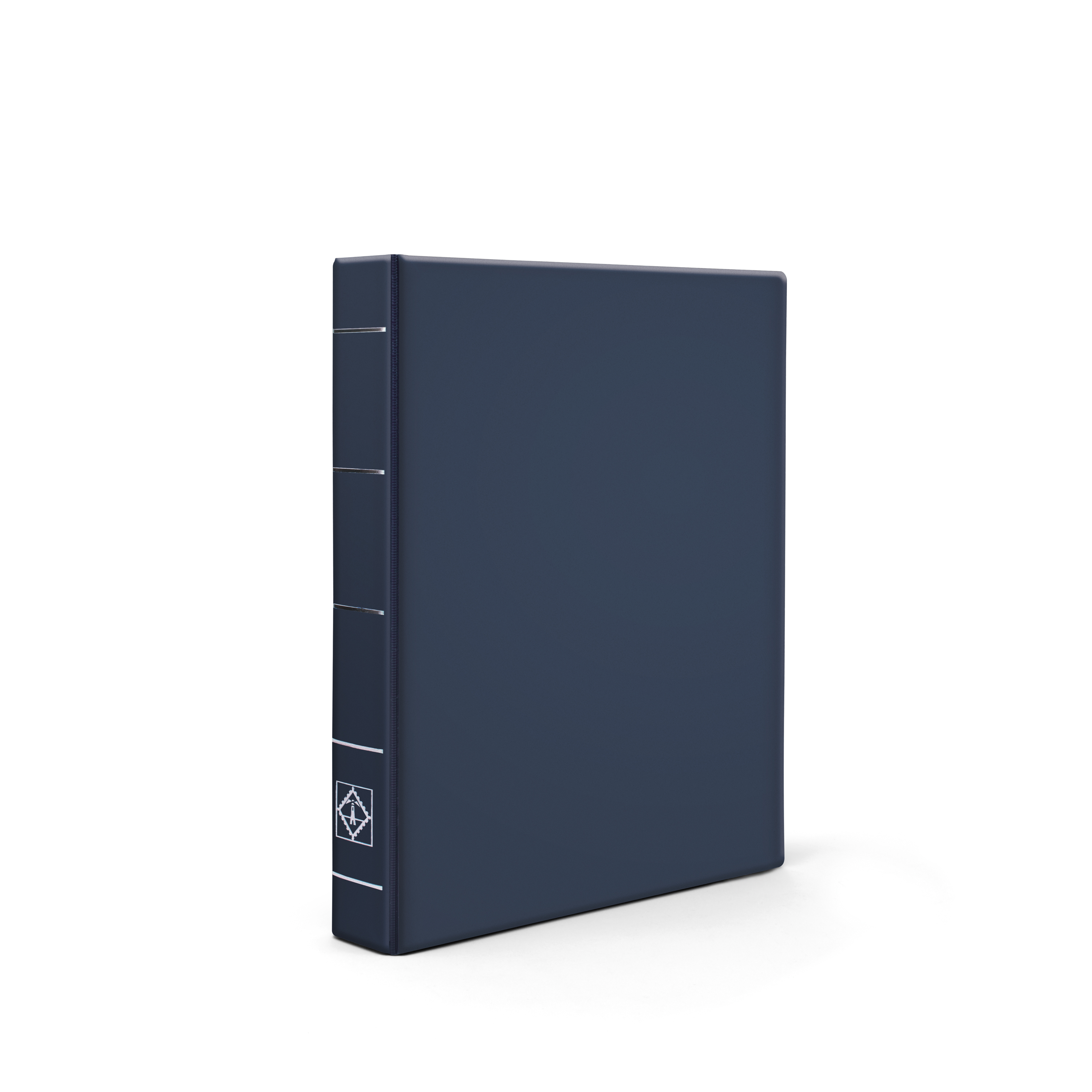 Leicht wattierter, glatter Einband mit silberfarbener Prägung und geradem Rücken. Stabile 4-Ring-Geradbügelmechanik. Binder ohne Inhalt. Außenformat: 270 x 220 x 40 mm.