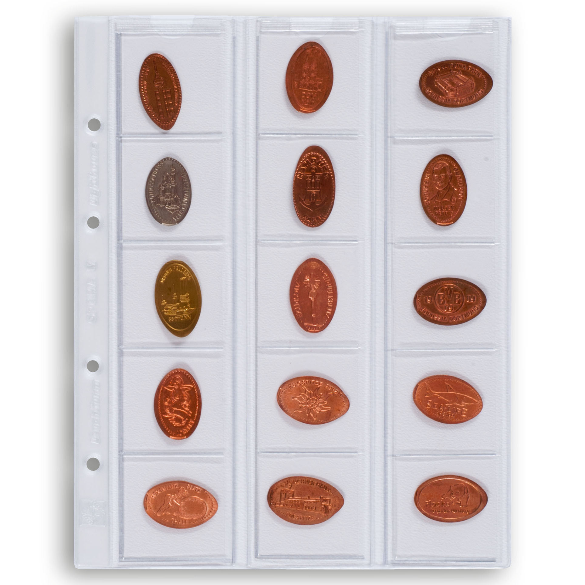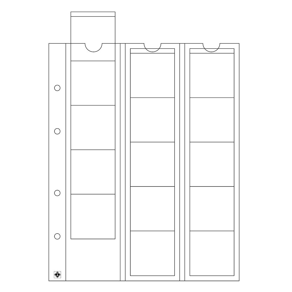 Münzhüllen OPTIMA42, 202x252 mm, für 15 Münzen bis 42 mm ø, klar, auch für Casino Chips geeignet.