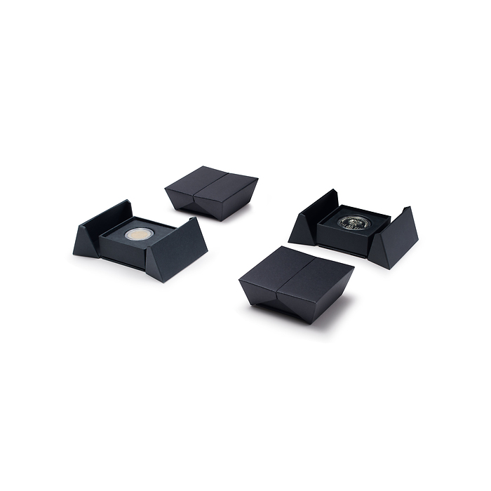 Das Aufklappen der Türen dieses vollständig aus Papier gefertigtem Etuis sorgen für ein echtes Erlebnis, wenn Sammler einen ersten Blick auf Ihre neue Münze werfen.