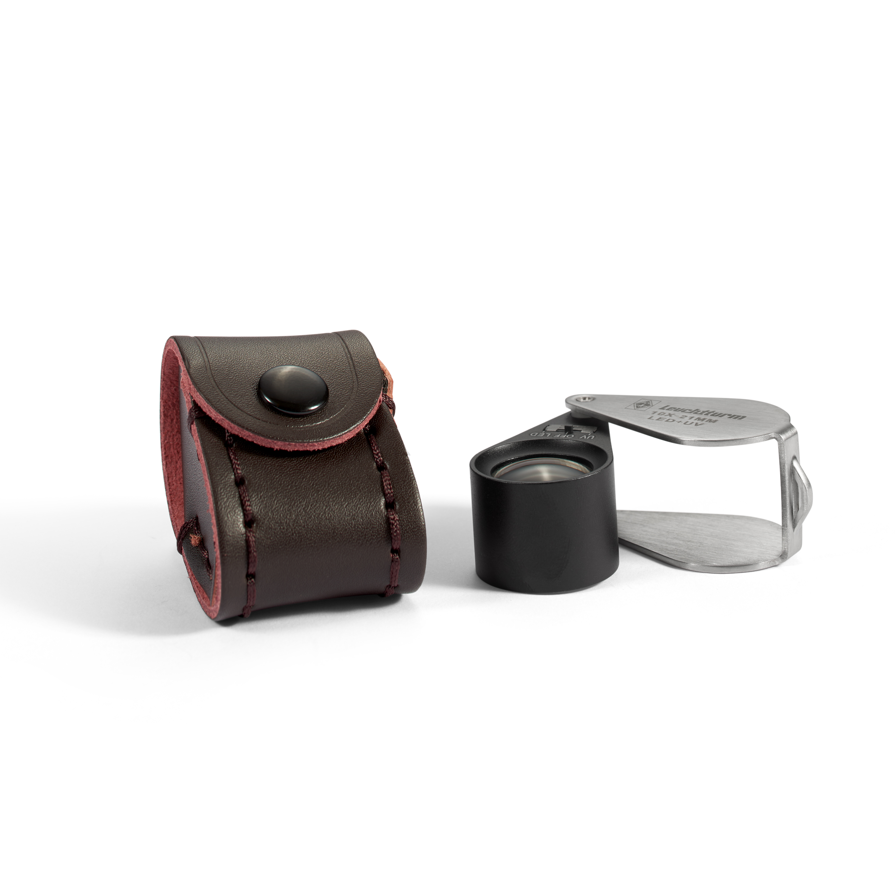 Präzisionslupe (Einschlagslupe) mit 10-facher Vergrößerung. 3-faches Linsensystem mit achromatischer und aplanatischer Linse für farbfehlerfreie und scharfe Abbildungen, auch in den Randbereichen. Besonders deutliche und gleichmäßige Ausleuchtung des Sichtfeldes durch 6 weiße Hi-Tech-LEDs (plaziert am unteren Linsenrand). Zur Prüfung von z.B. Briefmarken und Geldscheinen nutzen Sie die integrierte langwellige UV-Lampe (bestehend aus 7 UV-LEDs). Glaslinse mit einem Linsendurchmesser von 17 mm. Zusammenklappbar. Betrieb mit 3x LR927-Batterien (im Lieferumfang enthalten). Inkl. Leder-Etui.