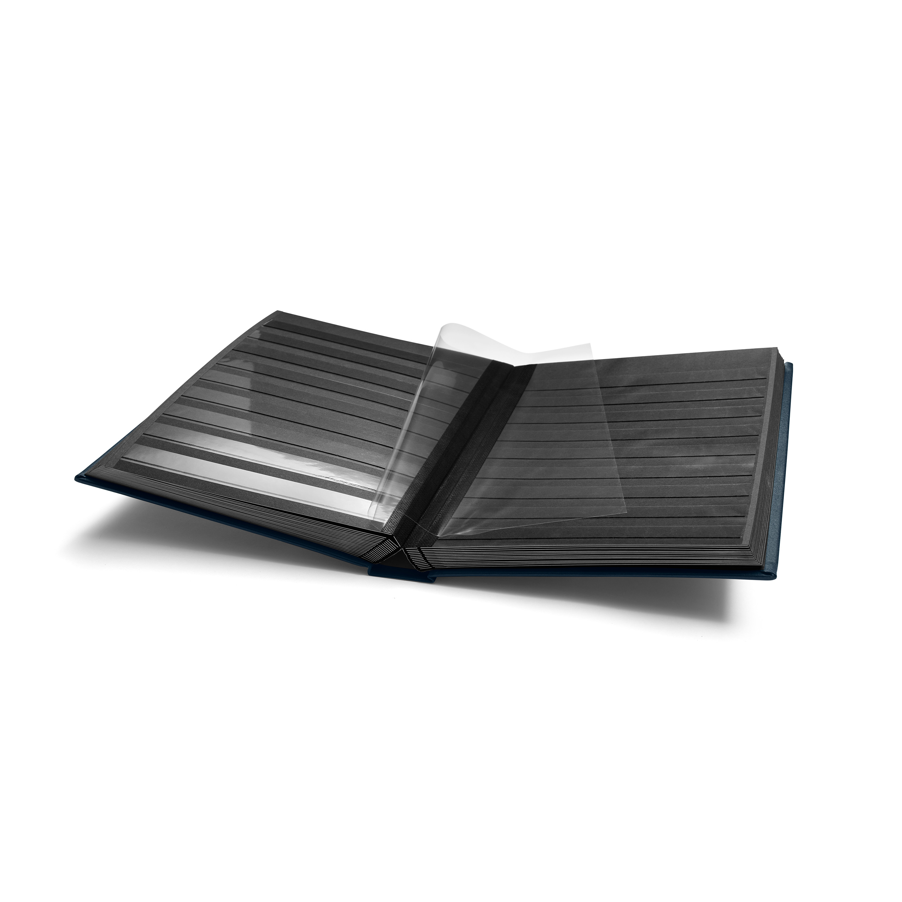 Premium Einsteckbuch, DIN A4, 64 schwarze Seiten, wattierter Einband aus LEFA, blau