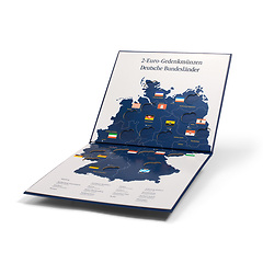 1. oder 2. Serie „Deutsche Bundesländer“. Der hochwertig bedruckte Karton zeigt eine Deutschland-Karte mit passgenauen Ausstanzungen für 16 Münzen aller deutschen Bundesländer. Außenformat (geschlossen): 255 x 280 mm.