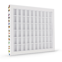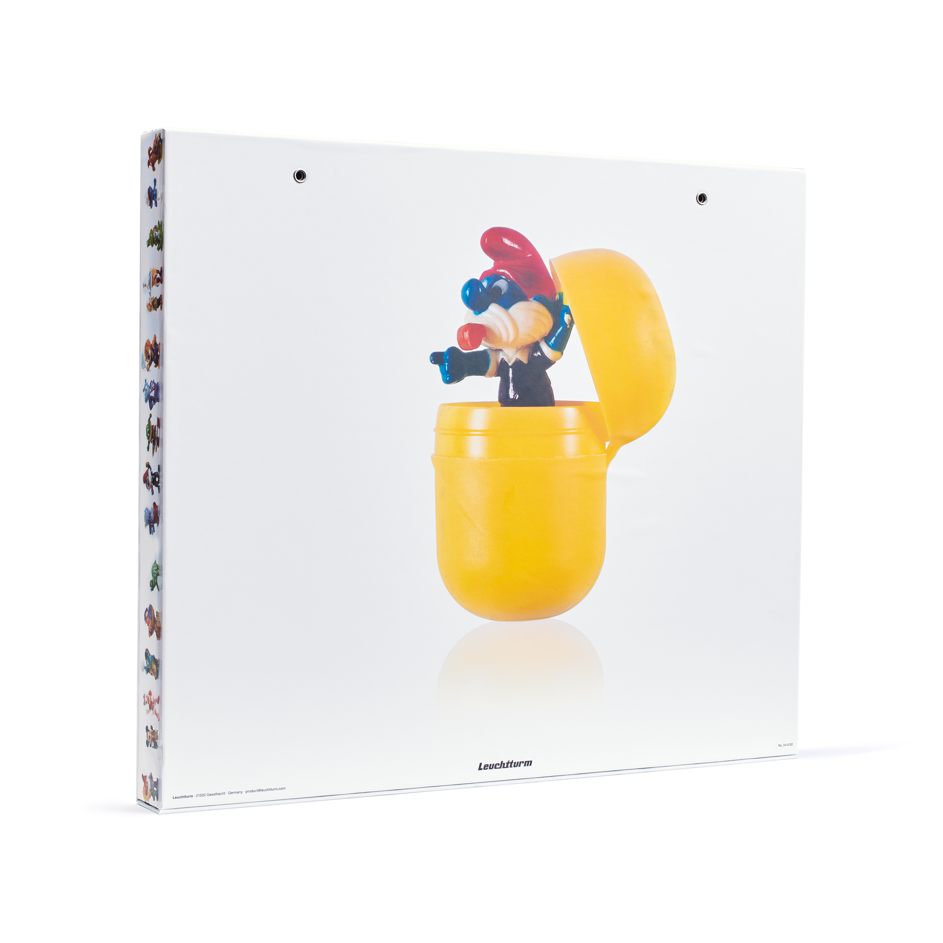 Die farbenfrohen und lustigen Abbildungen der beliebten Ü-Eier-Figuren zieren die gesamte Box, während Papa Schlumpf in überdimensionalem Format auf der Rückseite dargestellt ist. Dank des neuen Designs bleiben alle Sammelobjekte selbst bei geschlossenem Deckel sichtbar. Der aufklappbare Deckel mit großem Sichtfenster und unauffälligem Magnetverschluss schützt Ihre Sammlung und präsentiert sie zugleich stilvoll. Mit 60 fest integrierten Fächern im Format 50 x 36 x 33 mm bietet die Box ausreichend Platz für eine komplette Serie (bis zu 10 Figuren pro Reihe). Der stabile Karton mit fest eingesetzten Zwischenwänden sorgt für sicheren Halt. Ein seitliches Beschriftungsfeld ermöglicht die individuelle Kennzeichnung. Neu: Mit Ösen auf der Rückseite ist die Box nun auch zum Aufhängen geeignet. Außenmaße: 445 x 384 x 38 mm.