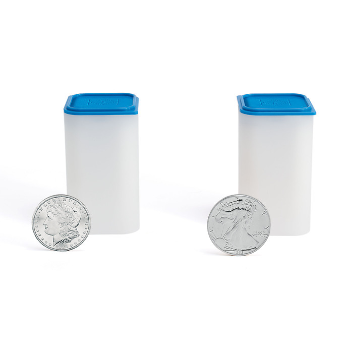 Diese quadratischen Münztubes wurden für die platzsparende und sichere Lagerung von Silberunzen entwickelt.