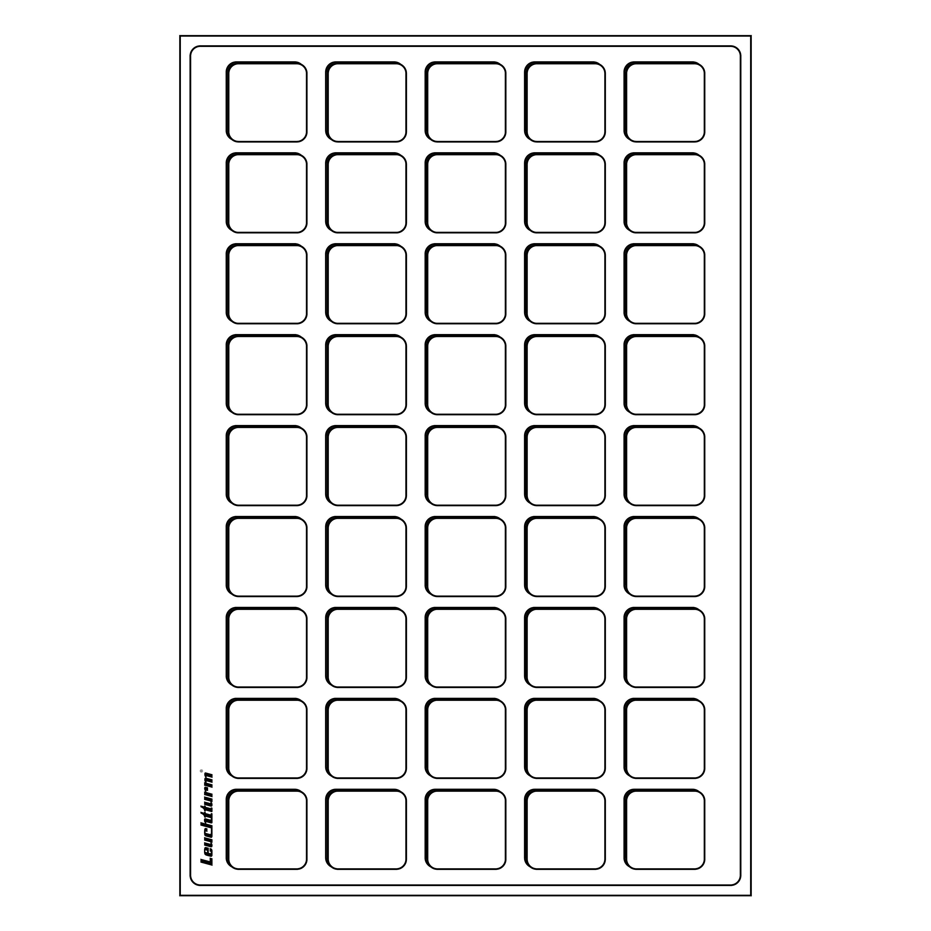 Münztableau mit 45 eckigen Feldern für Münzen bis 31 mm Ø. Auch für Champagnerdeckel und Kronkorken geeignet. Tableaus mit veloursartiger Oberfläche. Passend für: Koffer CARGO L6, CARGO L 12 (leer) + Münzkassette L.