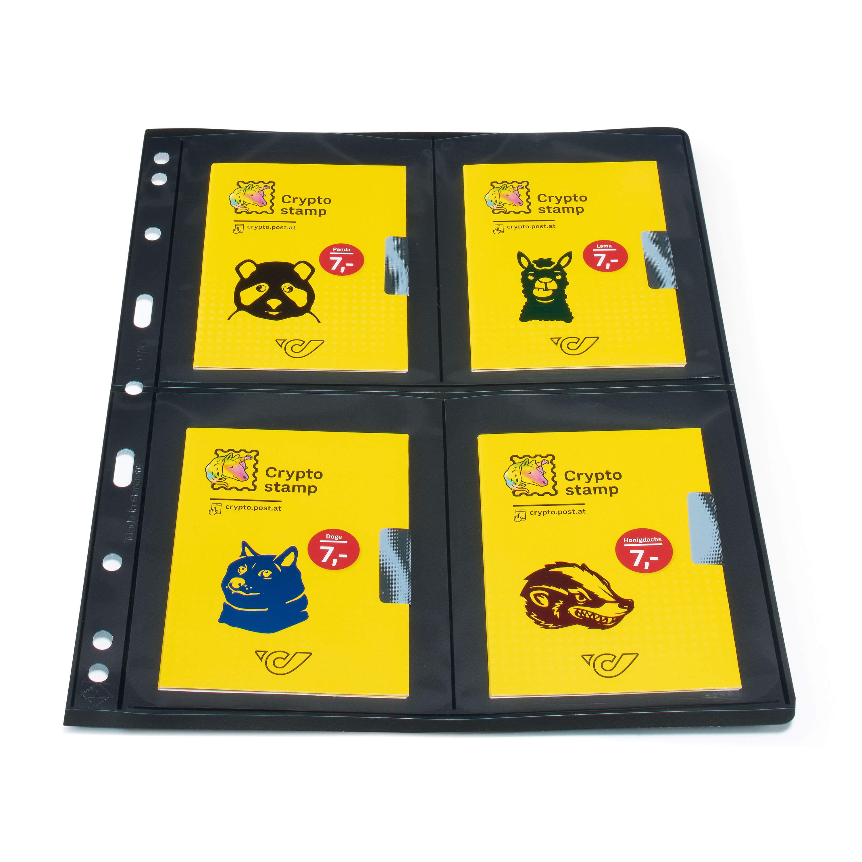 Kunststoffhüllen 2ST, 2er-Einteilung, senkrecht geteilt Format: (B/H) 96x128 mm, schwarze Folie, sind aus einer weichmacherfreier Spezialfolie (Hart-PVC)