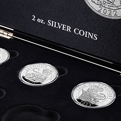 Volterra Uno - Münzkassette für 10 Silbermünzen „Tudor Beasts“ in Kapseln