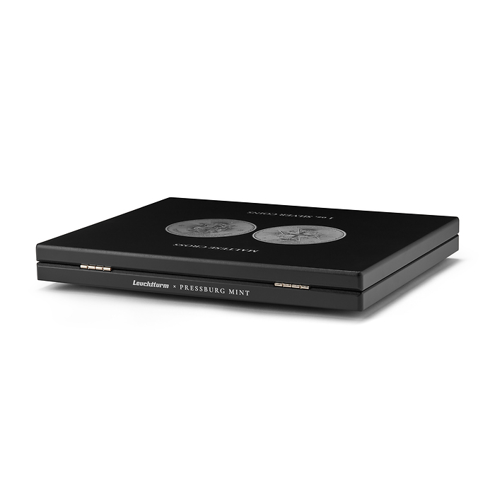 Die "Maltese Cross" Silbermünzenserie besticht durch ihr einzigartiges Design und die symbolträchtige Darstellung des Malteserkreuzes, das seit Jahrhunderten für Mut, Ehre und Tradition steht. Diese hochwertige Kassette ist perfekt auf die "Maltese Cross"-Münzen abgestimmt und bietet eine sichere und elegante Aufbewahrungslösung. Passend für Grips 39. Mit einer speziell angefertigten Einlage und einem ansprechenden Äußeren schützt sie Ihre wertvollen Sammlerstücke optimal und präsentiert sie auf stilvolle Weise. Ideal für Sammler, die Wert auf eine anspruchsvolle und ansprechende Präsentation ihrer Münzen legen. Dieses Produkt wurde exklusiv in Zusammenarbeit mit der Prägestätte Pressburg Mint entwickelt.