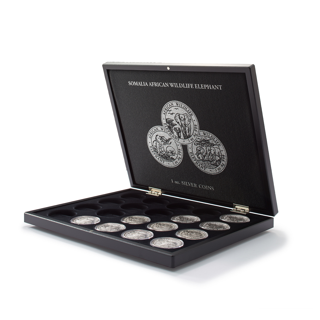 Volterra Uno - Münzkassette für 20 Silbermünzen „Somalia Elephant“ in Kapseln