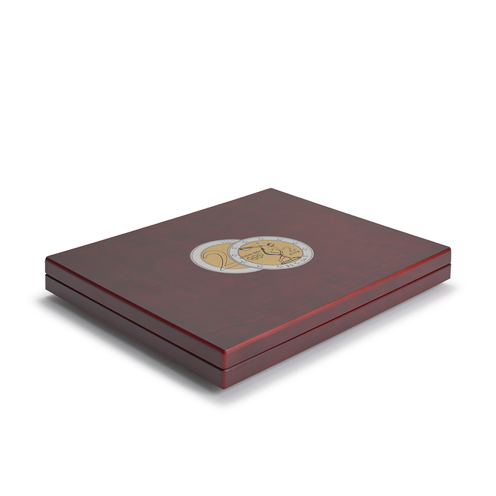 Die Münzkassette Volterra Uno de Luxe bietet eine elegante Lösung zur Aufbewahrung Ihrer 2-Euro-Münzen in Kapseln. Diese hochwertige Kassette beeindruckt mit einer mahagonifarbenen Holzmaserung und einem Deckelkissen aus blauem Satin, ergänzt durch eine aufwändige Deckelprägung. Die Einlage mit veloursartiger Oberfläche bietet Platz für insgesamt 35 2-Euro-Münzen in Münzkapseln, verteilt auf 5 x 7 runde Felder mit einem Durchmesser von 32 mm. Mit einem Außenformat von 305 x 30 x 245 mm verbindet die Münzkassette Volterra Uno de Luxe stilvolle Präsentation und optimalen Schutz für Ihre Sammlung.